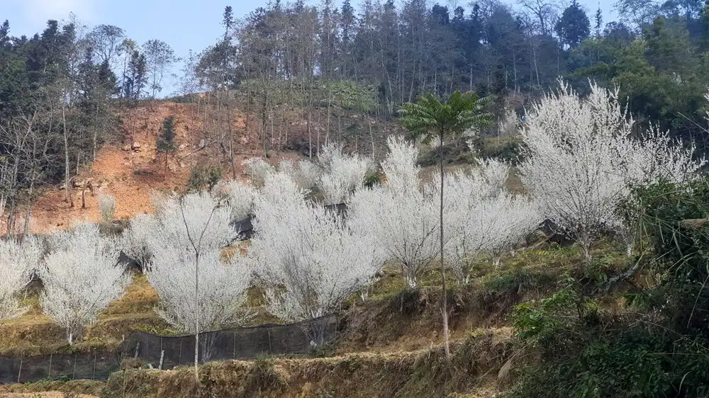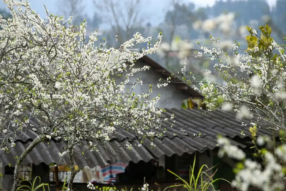 Cả bản làng như bị bao phủ bởi vẻ đẹp tinh khôi của loài mận Tam Hoa đầy giản dị mà chẳng kém phần kiêu sa này. Sắc hoa tinh khôi, nở rộ trong những khu vườn, bên cạnh đầu nhà, cánh hoa mỏng manh, rơi vãi trên những con đường đất đỏ, để rồi nơi đây hiện lên tựa bức tranh thiên nhiên đầy thi vị, quyến rũ.